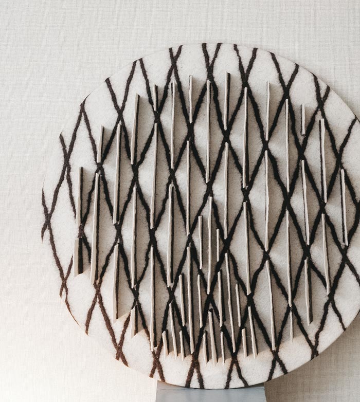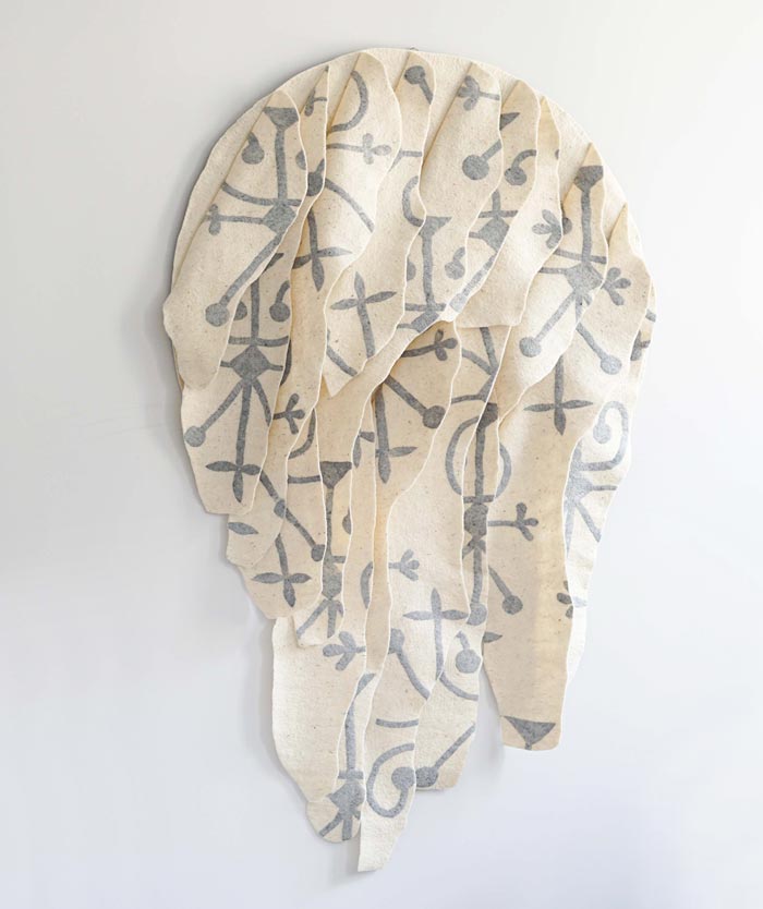 Ihre künstlerische Praxis ist in der materiellen Kultur und Kosmologie der Tscherkessen verwurzelt. Durch Filz und Ornament verbindet Khalilova traditionelles Handwerk und