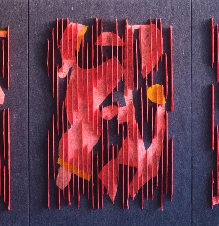 Triptychon • 300 x 130 cm • Wolle, Filz, • 2023