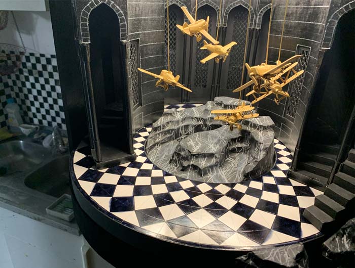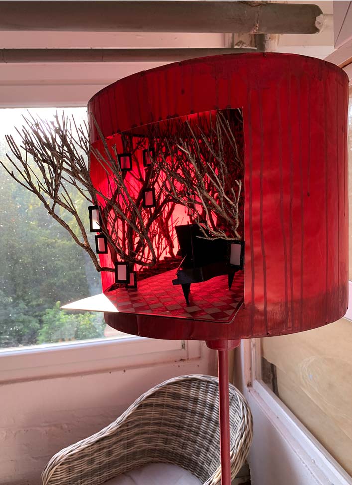 Bevor ich mich 2023 ganz der freien Kunst zuwendete, war ich unter anderem lange als Bühnenbildner tätig. Modelle habe ich allerdings als Kind schon gerne gebaut! Der verkleinerte Raum weckt Phantasien und Sehnsüchte. Je näher man heran tritt, desto mehr scheint man darin zu verschwinden… Dem Zauber der suggestiven Verkleinerung kann man sich schwer entziehen - in der Ambivalenz zwischen Riese und Zwerg erkennen wir unsere Lust, die Grenzen des Körpers zu sprengen und jemand anderes, wo anders, zu einer anderen Zeit zu sein.